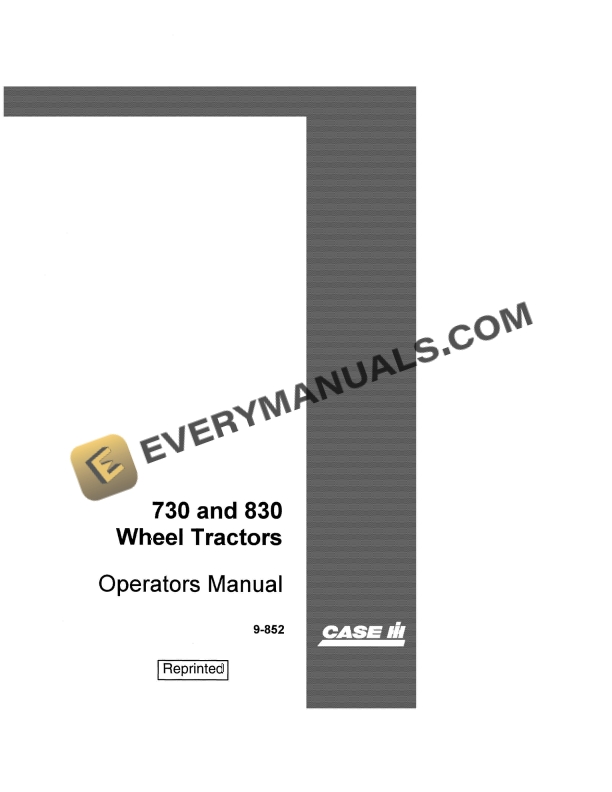 Case 730, 830 Wheel Tractor Operator Manual 9-852 PDF