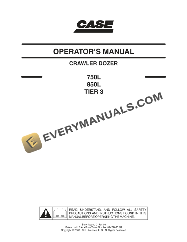 Case 750L, 850L Tier 3 Crawler Dozer Operator Manual 87479855NA PDF