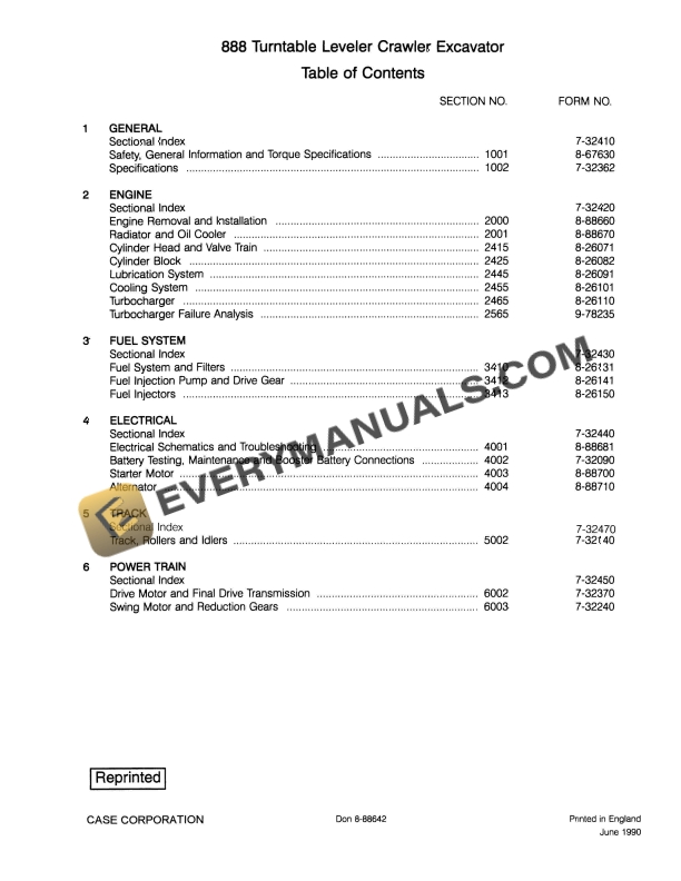 Case 888 Turntable Leveler Crawler Excavator Service Manual 8-88642 PDF