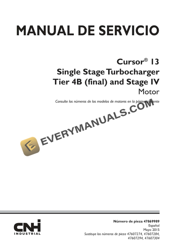 Case Cursor 13 Single Stage Turbocharger Tier 4B (Final) and Stage IV Engine Service Manual 47869989 ES PDF