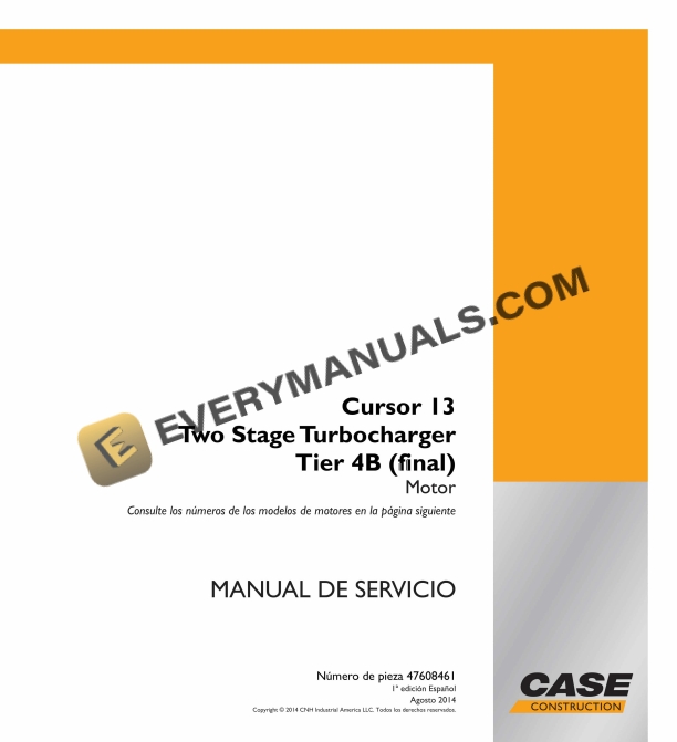 Case Cursor 13 Two Stage Turbocharger Tier 4B (Final) Motor Service Manual 47608461 ES PDF