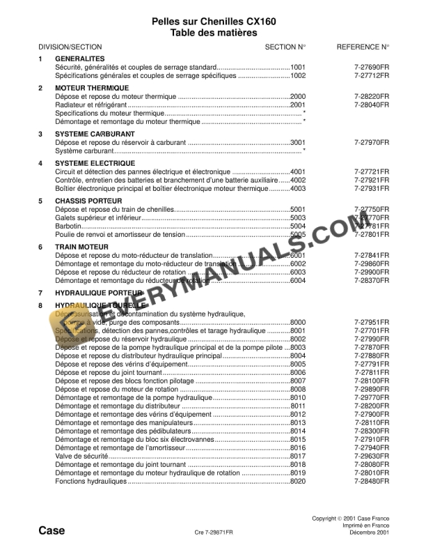 Case CX160 Crawler Excavator Service Manual 7-29871 FR PDF