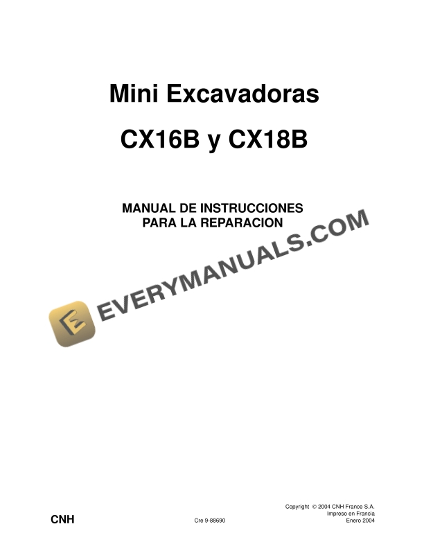 Case CX16B, CX18B Mini Excavator Repair Manual 9-88690 PDF