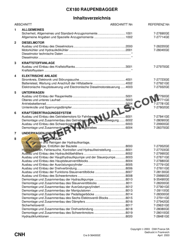 Case CX180 Crawler Excavator Service Manual 9-36400GE PDF