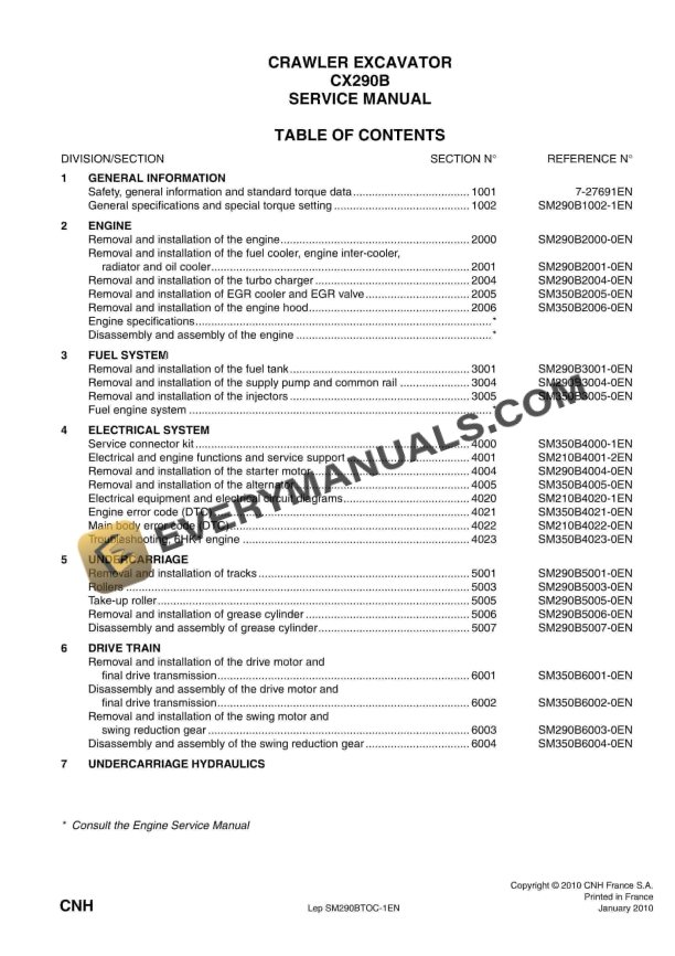 Case CX290B Crawler Excavator Service Manual 87616577B PDF
