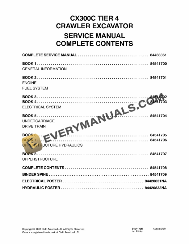 Case CX300C Tier 4 Crawler Excavator Service Manual 84541708 PDF