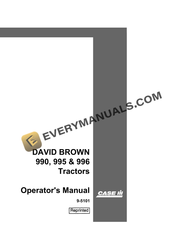 Case David Brown 990, 995, 996 Tractor Operator Manual 9-5101. PDF