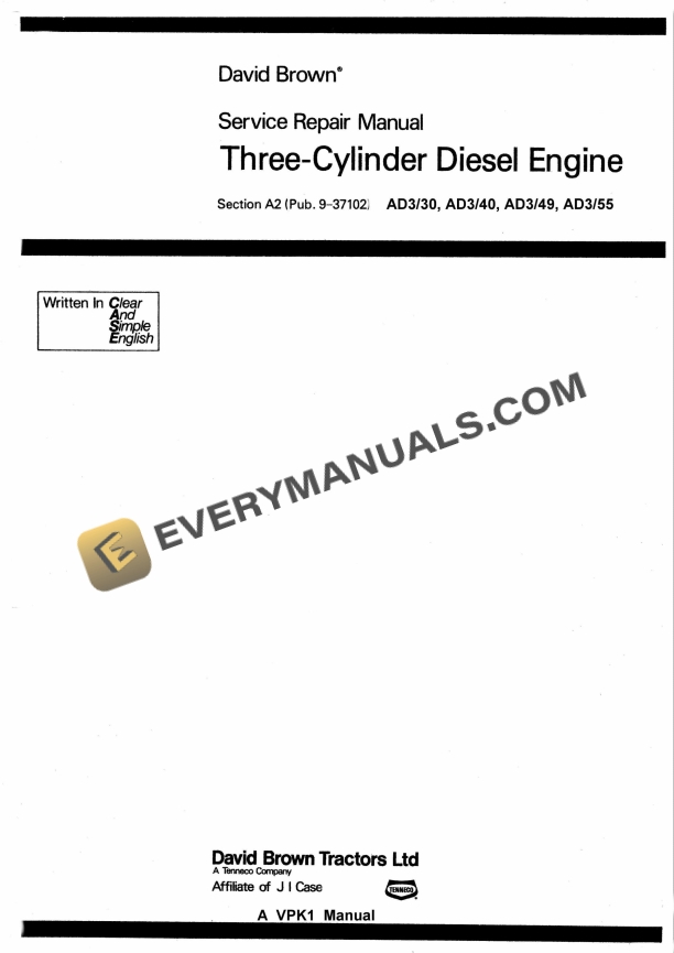 Case David Brown Three-Cylinder Diesel Engine AD3 Service Manual PDF