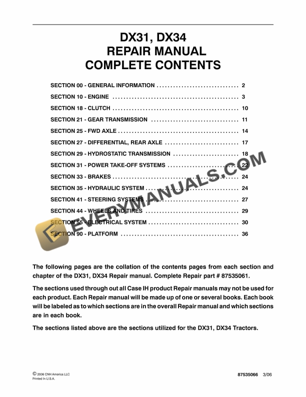 Case DX31, DX34 Tractor Repair Manual 87535066 PDF