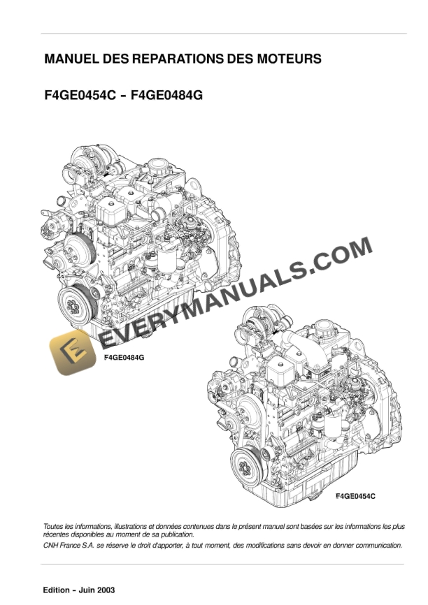 Case F4GE0454C, F4GE0484G Engine Repair Manual 9-88910 FR PDF