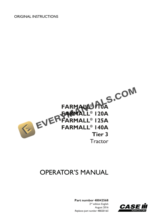 Case Farmall 110A, 120A, 125A, 140A Tier 3 Tractor Operator Manual 48042568 PDF