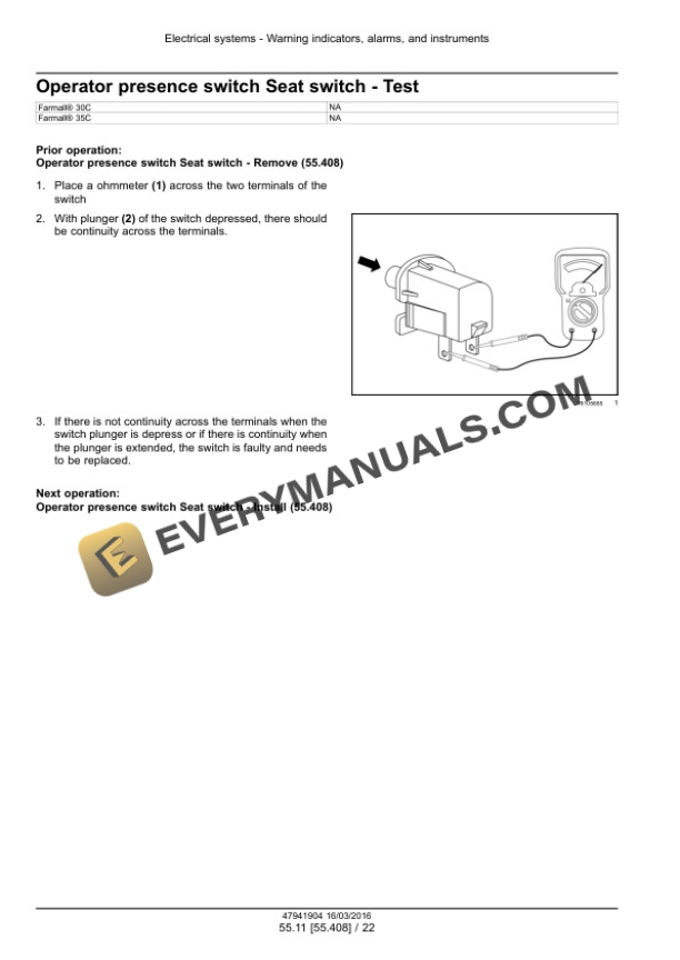 Case Farmall 30C, 35C Tier 4B (Final) Compact Tractor Service Manual 47941904 PDF