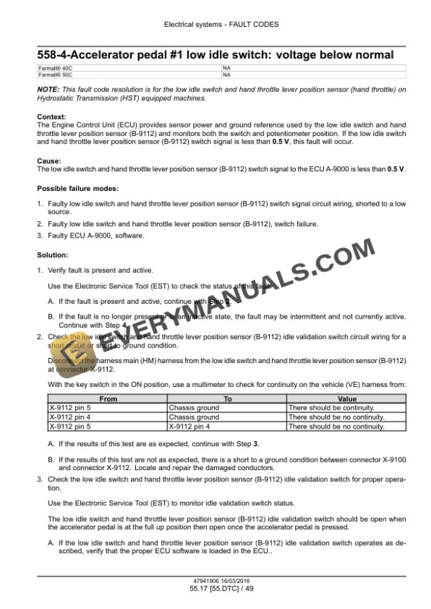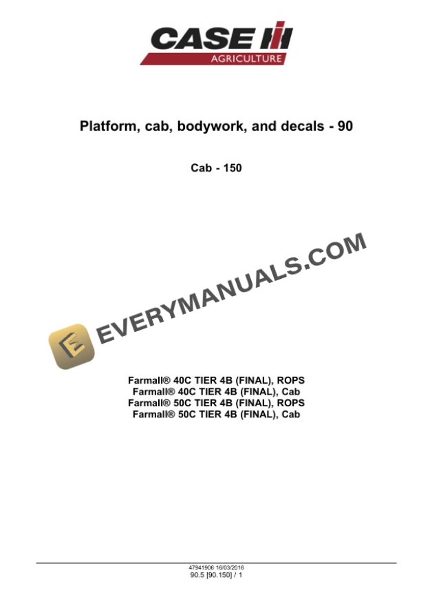 Case Farmall 40C, 50C Tier 4B (Final) Compact Tractor Service Manual 47998541 PDF