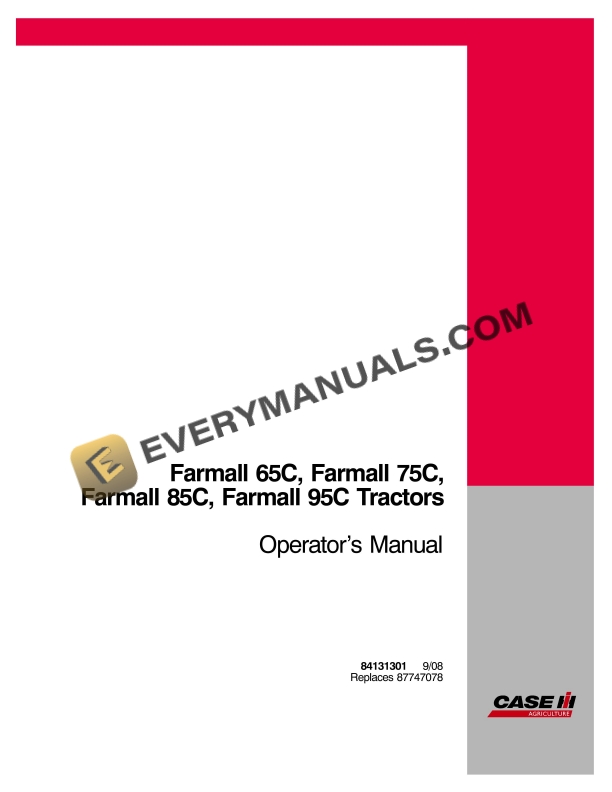 Case Farmall 65C, Farmall 75C, Farmall 85C, Farmall 95C Tractor Operator Manual 84131301 PDF