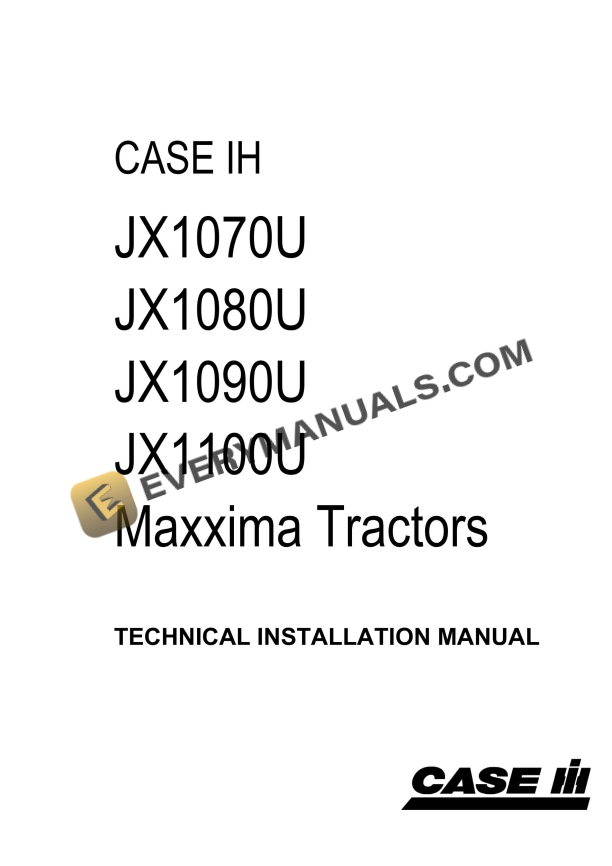 Case JX1070U, JX1080U, JX1090U, JX1100U Maxxima Tractor Technical Instalation Manual 6-66410 PDF