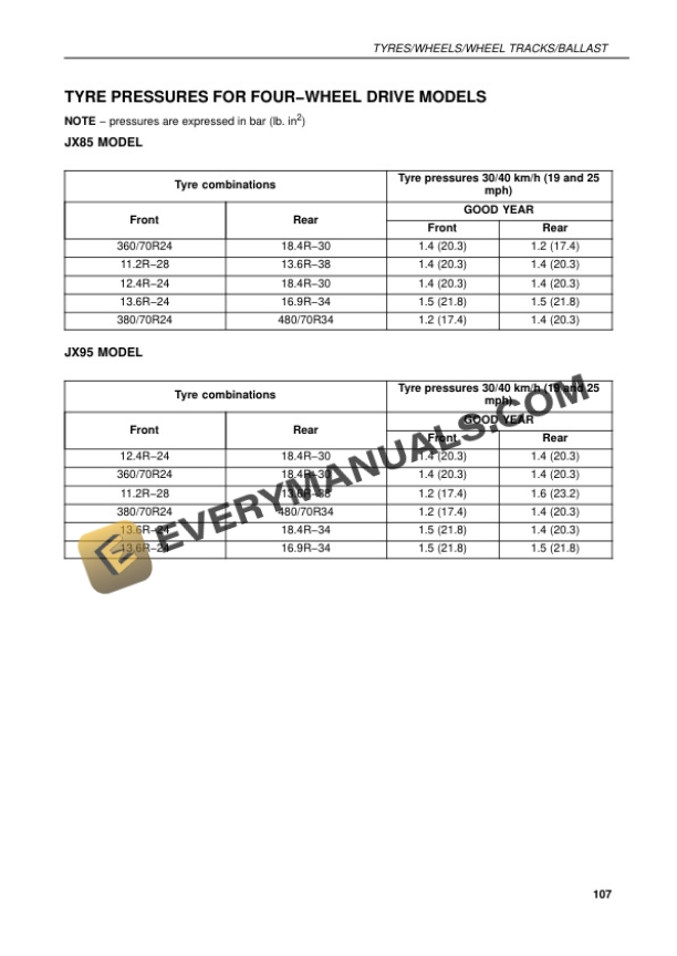 - 8. TYRES/WHEELS/WHEEL TRACKS/BALLAST