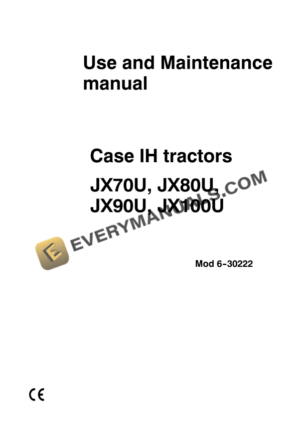 Case JX70U, JX80U, JX90U, JX100U Tractor Use and Maintenance Manual 6-30222 PDF