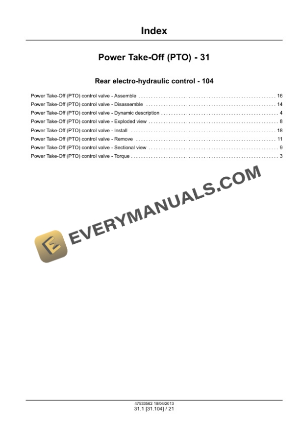- 2.2. Onespeed rear Power TakeOff (PTO) 110