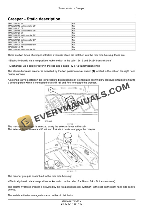 Case Maxxum 110 – 140 EP, 110 – 140 Multicontroller EP, CVT 110 Service Manual 47720779 PDF