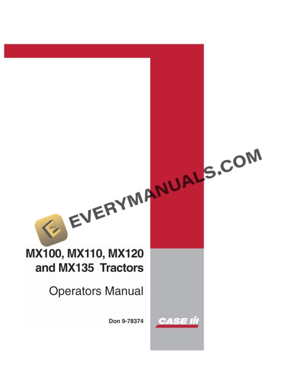 Case MX100, MX110, MX120, MX135 Tractor Operator Manual 9-78374 PDF