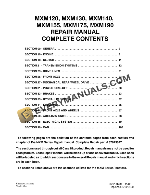 - 1. MXM120, MXM130, MXM140, MXM155, MXM175, MXM190 REPAIR MANUAL COMPLETE CONTENTS