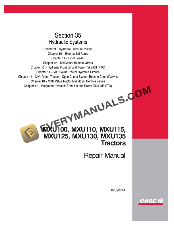 Case MXU100, MXU110, MXU115, MXU125, MXU135 Tractor Repair Manual 87520744 PDF