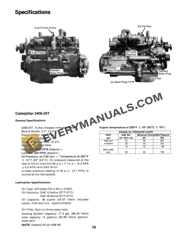 - 5. Supplement To PTA Series Operators Manual PTA 280 Cougar III Engine Specifications