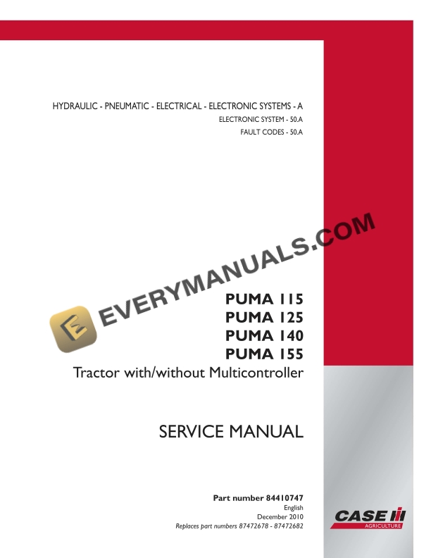 Case Puma 115, 125, 140, 155 Tractor with, without Multicontroller Service Manual 84410747 PDF
