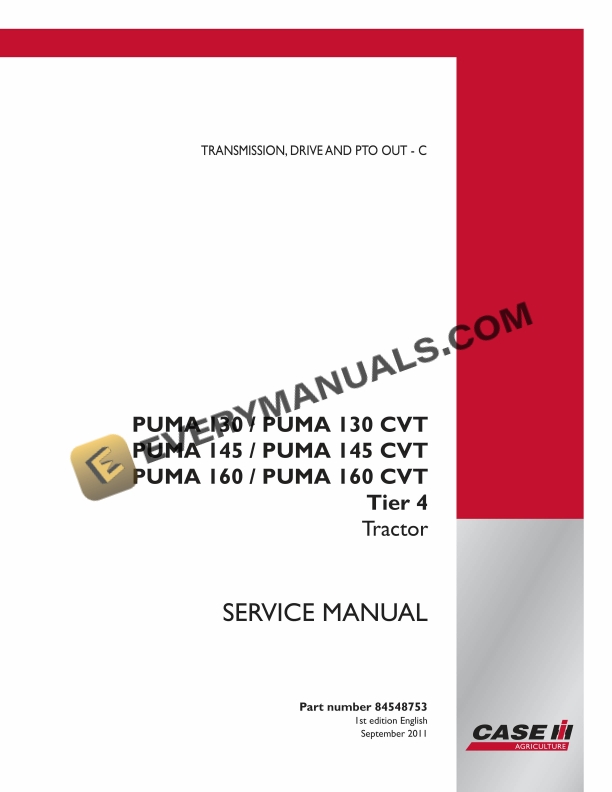 Case Puma 130, 130 CVT, 145, 145 CVT, 160, 160 CVT Tier 4 Tractor Service Manual 84548753 PDF