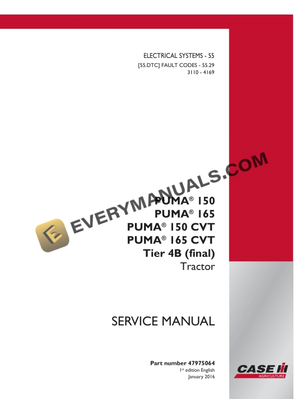 Case Puma 150, 165, 150 CVT, 165 CVT Tier 4B (Final) Tractor Service Manual 47975064 PDF
