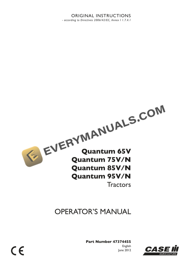 Case Quantum 65V, 75V-N, 85V-N, 95V-N Tractor Operator Manual 47374455 PDF
