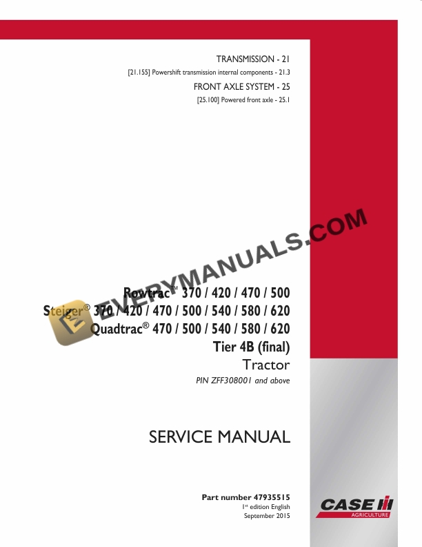 Case Rowtrac 370, 420, 470, 500, Steiger 370, 420, 470, 500, 540, 580, 620, Quadtrac 470, 500, 540, 580, 620 Tier 4B (Final) Tractor Service Manual 47935515 PDF