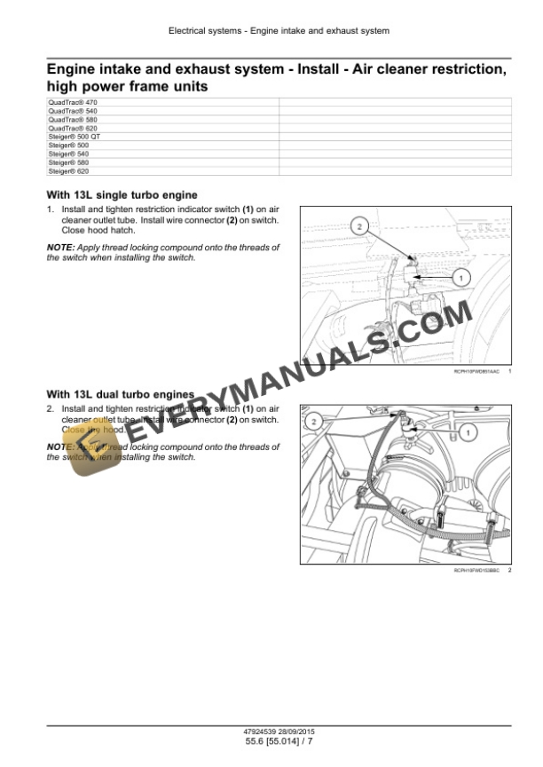 Case Rowtrac 370, 420, 470, 500, Steiger 370, 420, 470, 500, 540, 580, 620, Quadtrac 470, 500, 540, 580, 620 Tier 4B (Final) Tractor Service Manual 47935525 PDF
