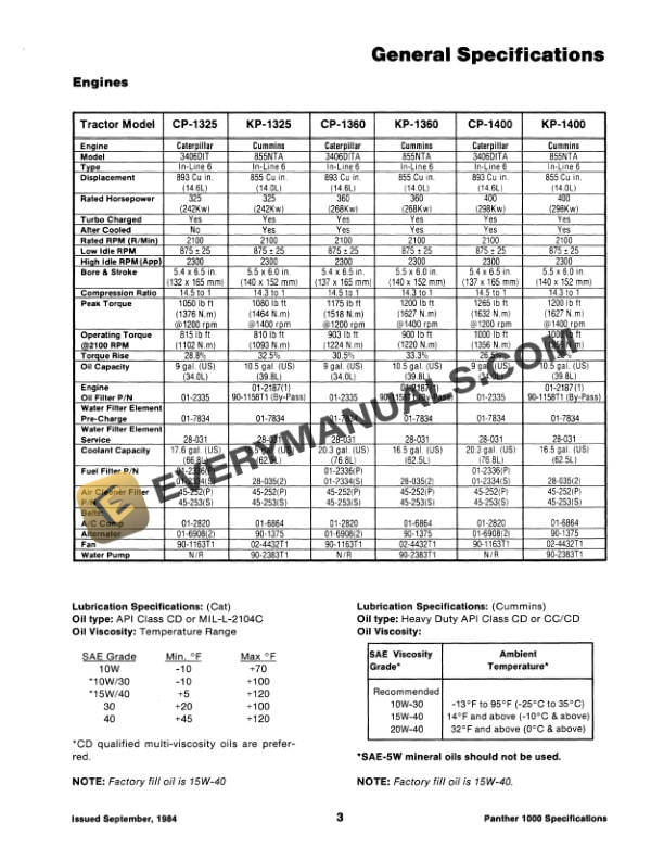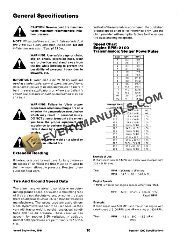 - Steiger General Specifications Panther 1000 Series Tractor