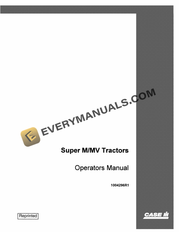 Case Super M, MV Tractor Operator Manual 1004296R1 PDF