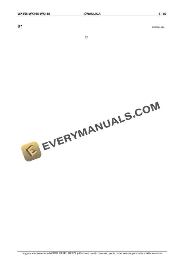 Case WX145, WX165, WX185 Hydraulic Excavator Repair Manual 9-91251 IT PDF