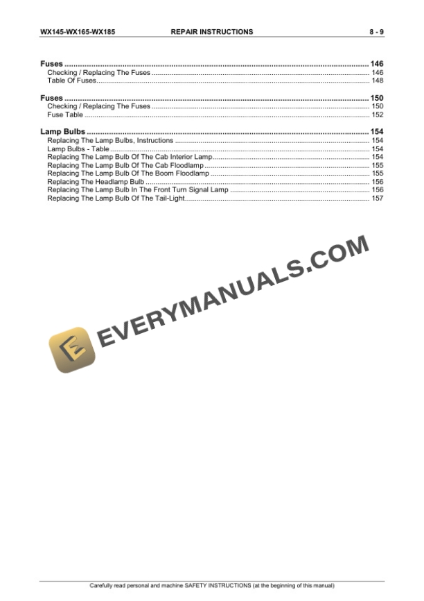 Case WX145, WX165, WX185 Hydraulic Excavator Service Manual 9-91221 PDF
