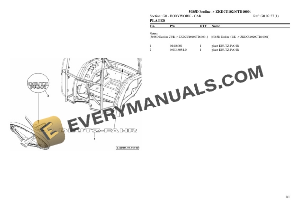 Deutz-Fahr 5085D Ecoline (ZKDCU10200TD10001) Tractor Parts Catalog PDF