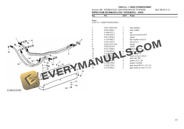 Deutz-Fahr 5105.4 G (ZKDCJ70200TD20001) Tractor Parts Catalog PDF