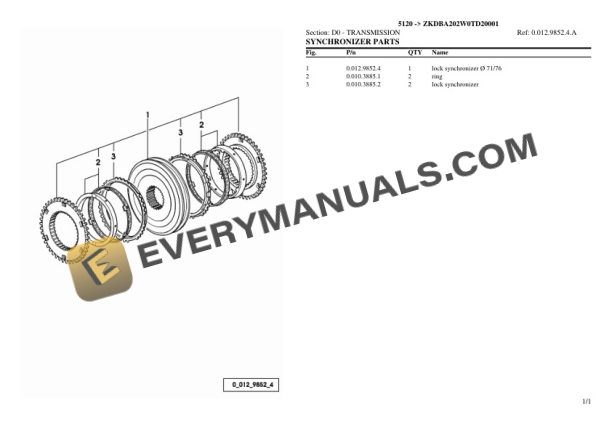 Deutz-Fahr 5120 (ZKDBA202W0TD20001) Tractor Parts Catalog PDF