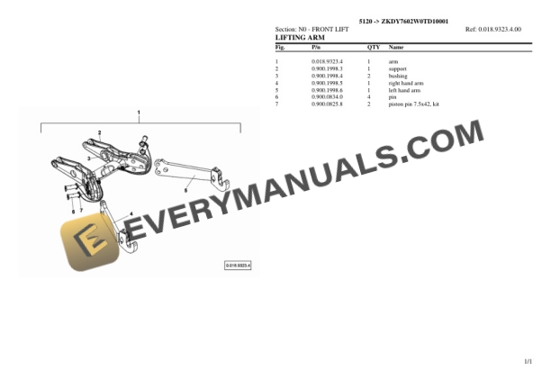 Deutz-Fahr 5120 (ZKDY7602W0TD10001) Tractor Parts Catalog PDF
