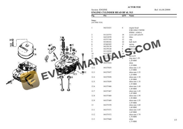 Deutz-Fahr ACTOR 5520 Tractor Parts Catalog PDF