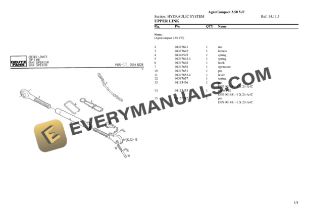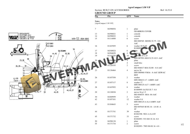 Deutz-Fahr AgroCompact 3.50 V_F Tractor Parts Catalog PDF
