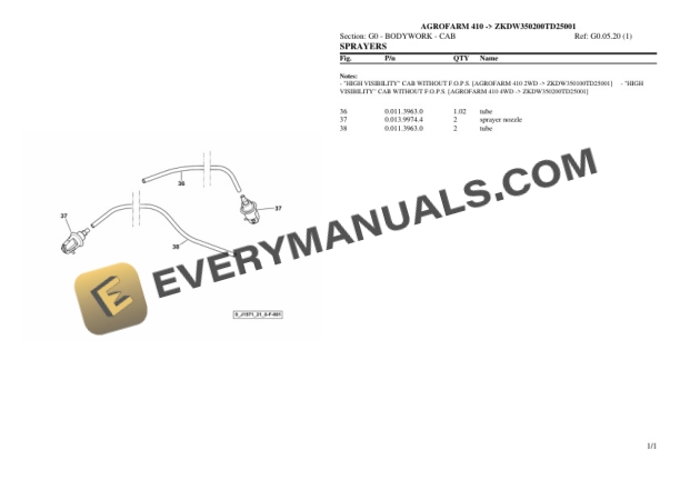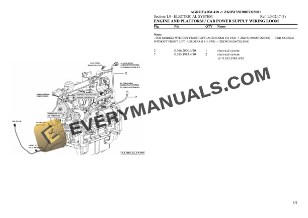 Deutz-Fahr AGROFARM 410 (ZKDW350200TD25001) Tractor Parts Catalog PDF