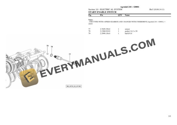 Deutz-Fahr Agrokid 210 (20001) Tractor Parts Catalog PDF