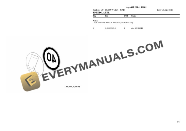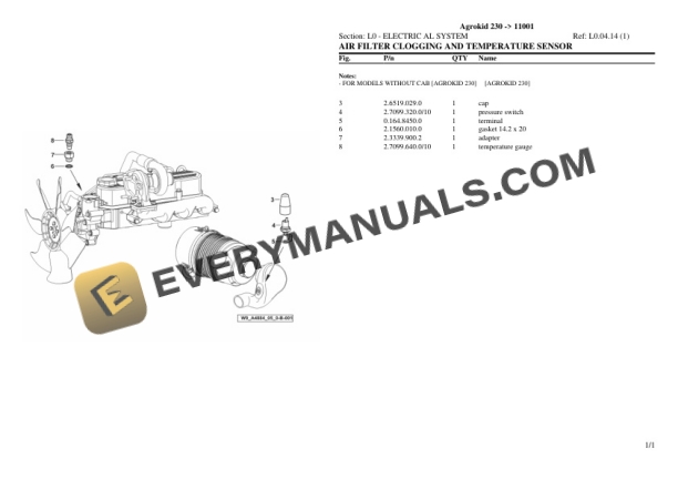 Deutz-Fahr Agrokid 230 (11001) Tractor Parts Catalog PDF