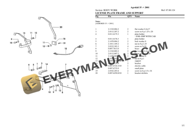 Deutz-Fahr Agrokid 35 (2001) Tractor Parts Catalog PDF