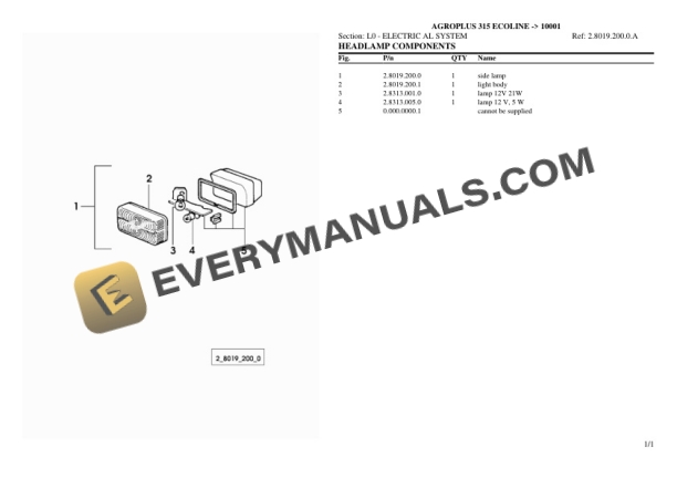Deutz-Fahr AGROPLUS 315 ECOLINE (10001) Tractor Parts Catalog PDF