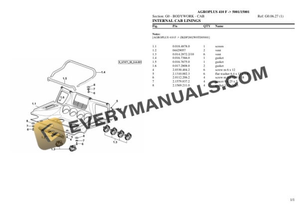 Deutz-Fahr AGROPLUS 410 F (5001 15001) Tractor Parts Catalog PDF
