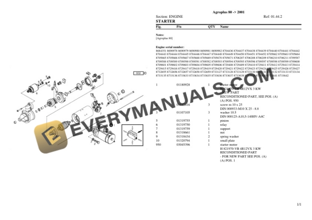 Deutz-Fahr Agroplus 80 (2001) Tractor Parts Catalog PDF